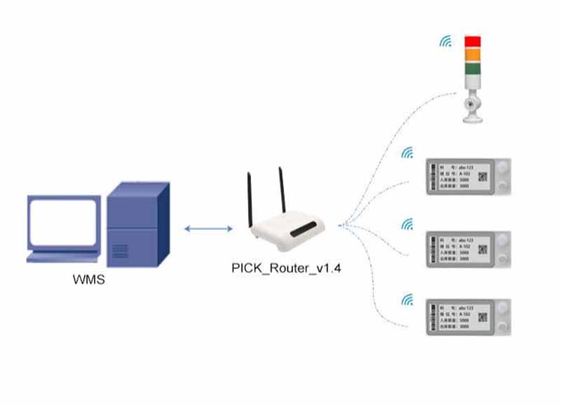电子标签拣货系统就是通过PC机发送指令,通过路由器转发,控制电子标签上的LED灯或屏幕指引拣货人员准确、快速地到指定的位置捡取指定数量的货物。电子标签拣货系统应用在货物品种较多的仓储库房中。它能大大提高入库,出库,盘点,移库的效率,做到入库,出库,盘点,移库完毕,就能生成报表,为决策人员提供实时的数据。
